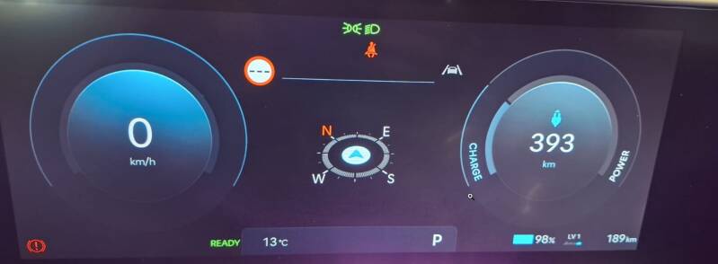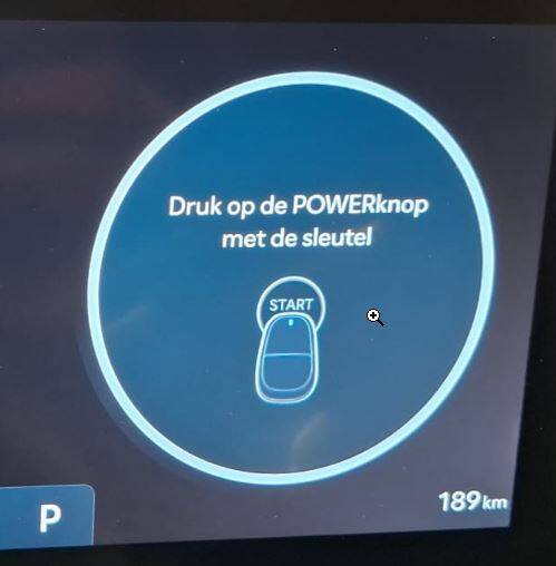 De Hyundai Kona heeft een startknop. Na het starten komt READY aan de linker kant in het display.